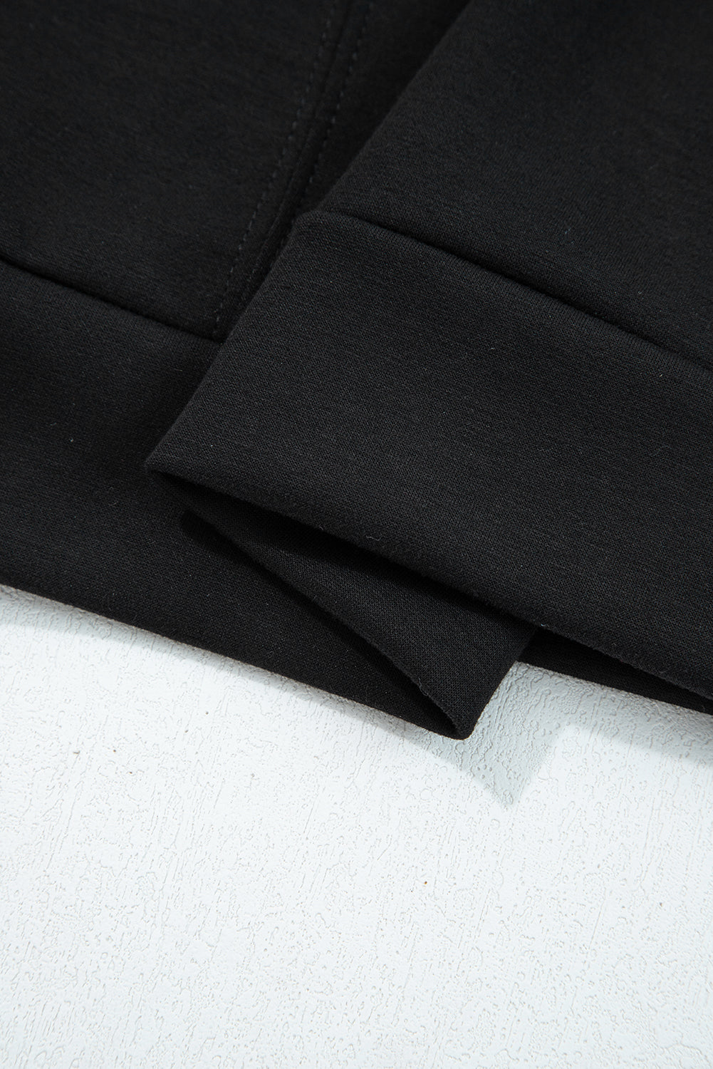 Black Zip Collar Long Sleeve Top Drawstring Pants Set